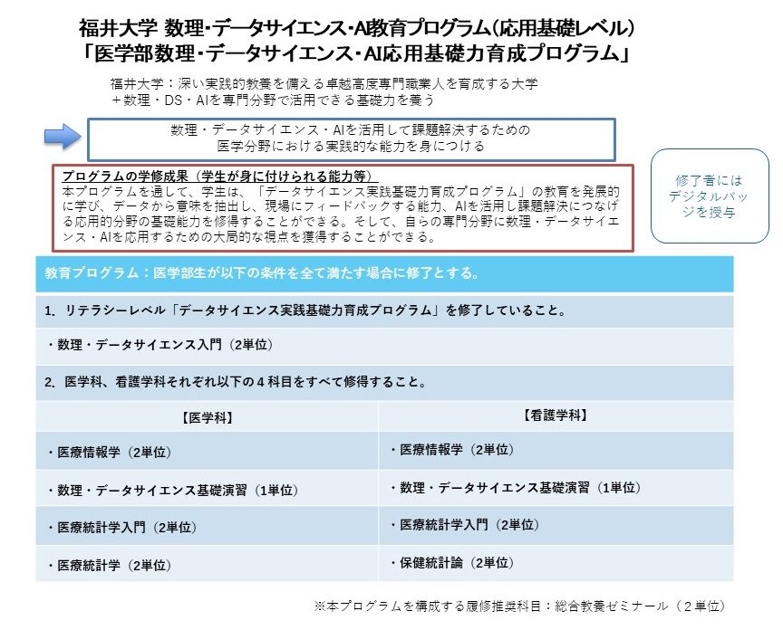 医学部数理・データサイエンス・AI応用基礎力育成プログラム