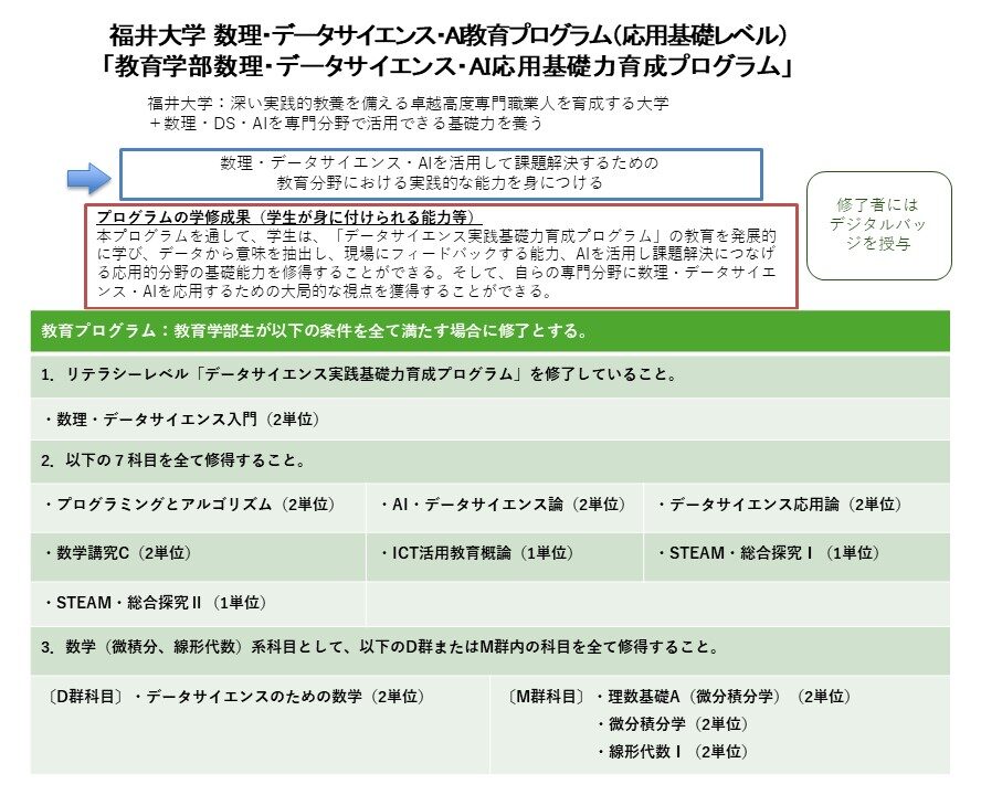 教育学部数理・データサイエンス・AI応用基礎力育成プログラム