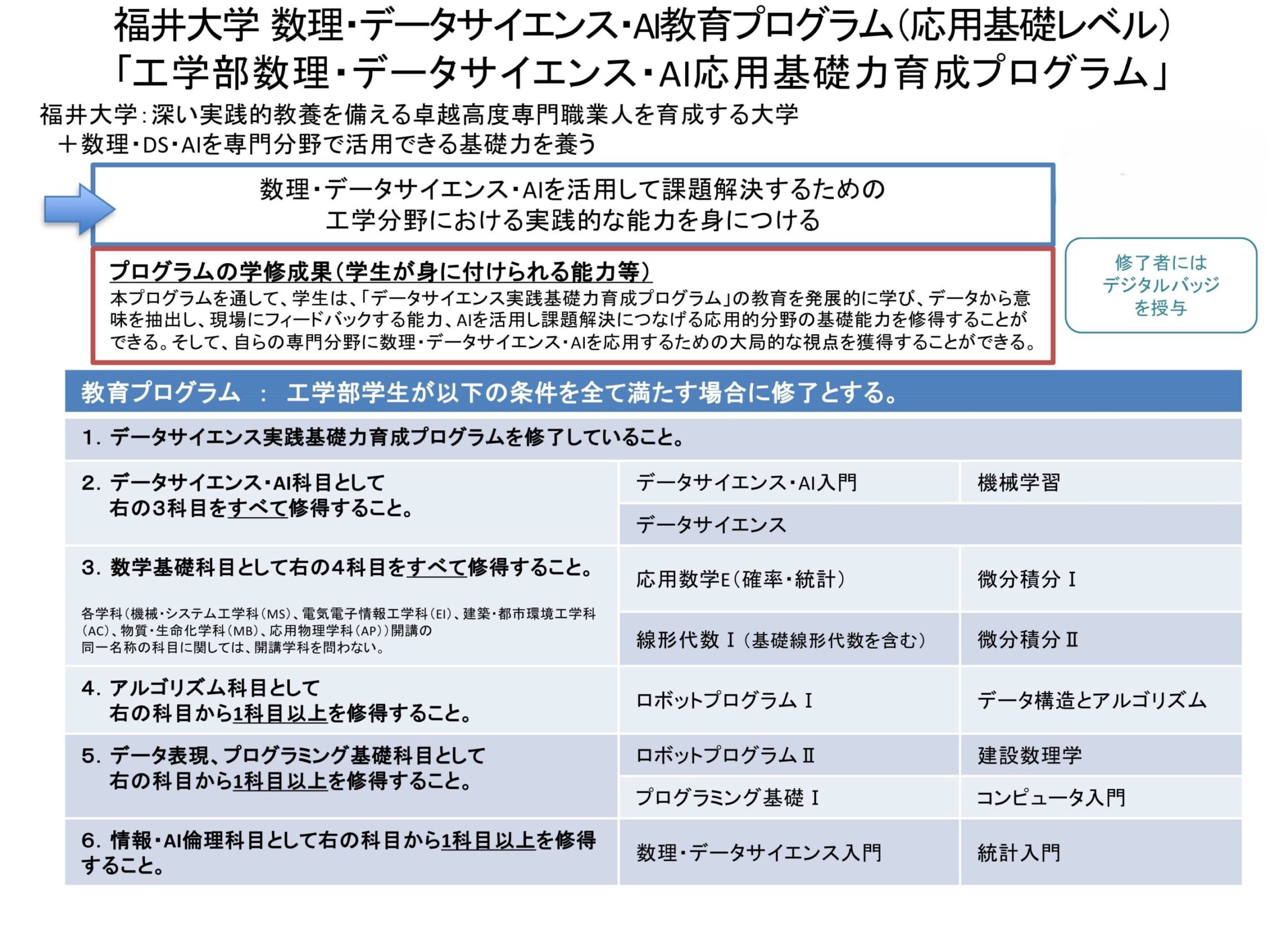 工学部数理・データサイエンス・AI応用基礎力育成プログラム